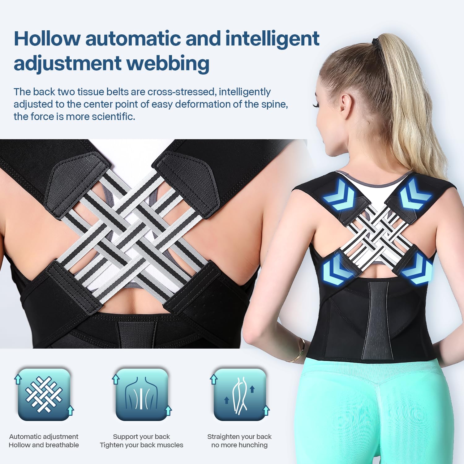 Corrector ergonómico que alinea tu espalda, reduce dolores y mejora tu postura al instante. Perfecto para uso diario.
